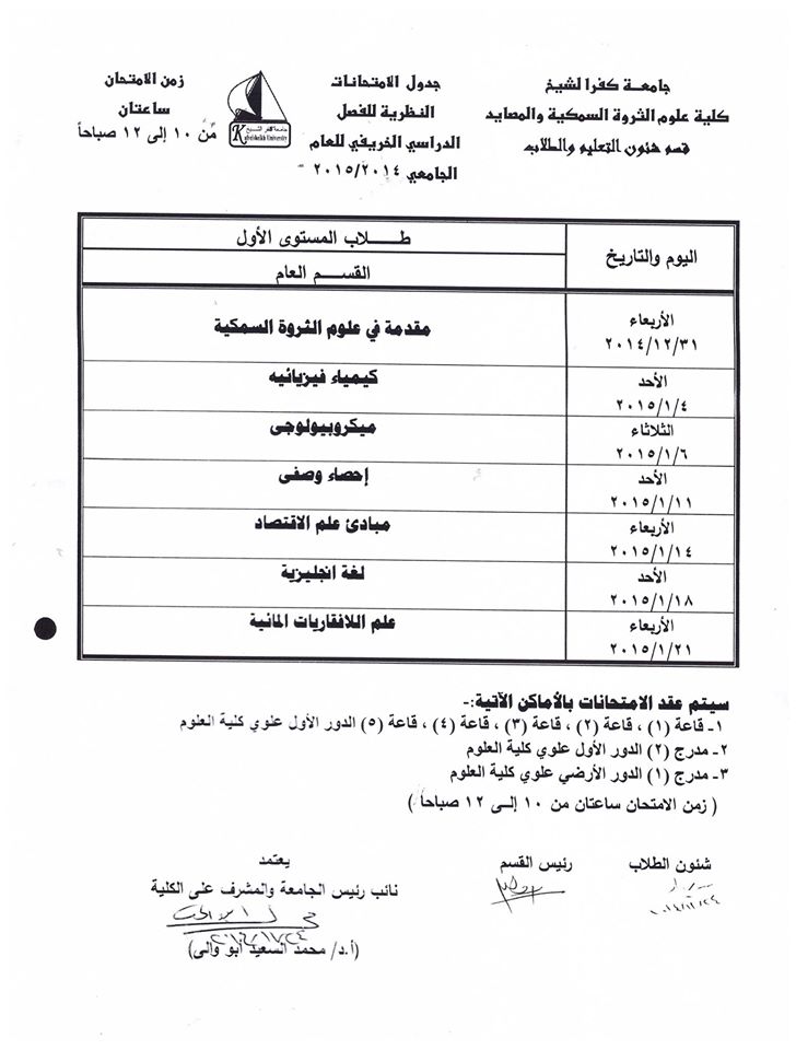 جدول امتحانات المستوى الأول